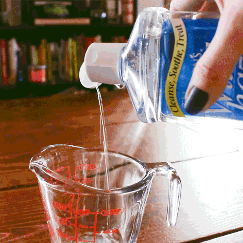 I like to use witch hazel rather than white vinegar due to its gentler scent, but alternatively, you could use that. Choose whichever essential oils strike your fancy.